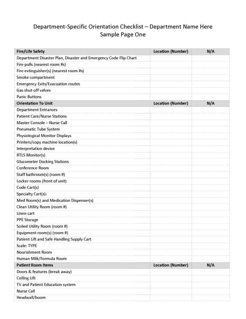 Department-Specific Orientation and Training